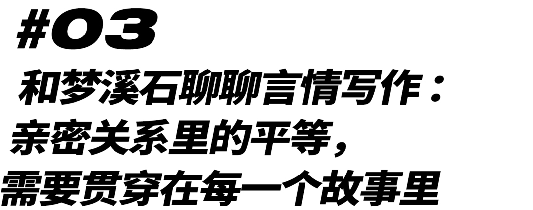 而时下流行的「大女主」「女 A 男 O」模式,在她看来一定程度上反映着女性意识的觉醒。她也希望在作品中传递这样的爱情观:女性要有足够的经济能力,足够独立自主,所得到的亲密关系应该让双方都变得更好。